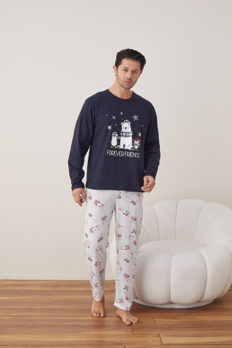 Pijama barbati Craciun FOREVER FRIENDS maneca lunga ,pantaloni lungi,Culoare Bleumarin ,Engros
