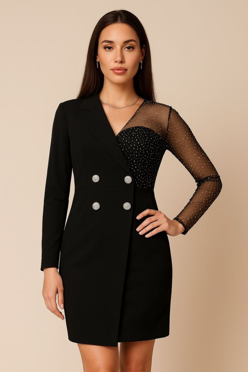 Rezultate Căutare: Rochie Sacou SASHA din Stofa si Plasa cu Strasuri