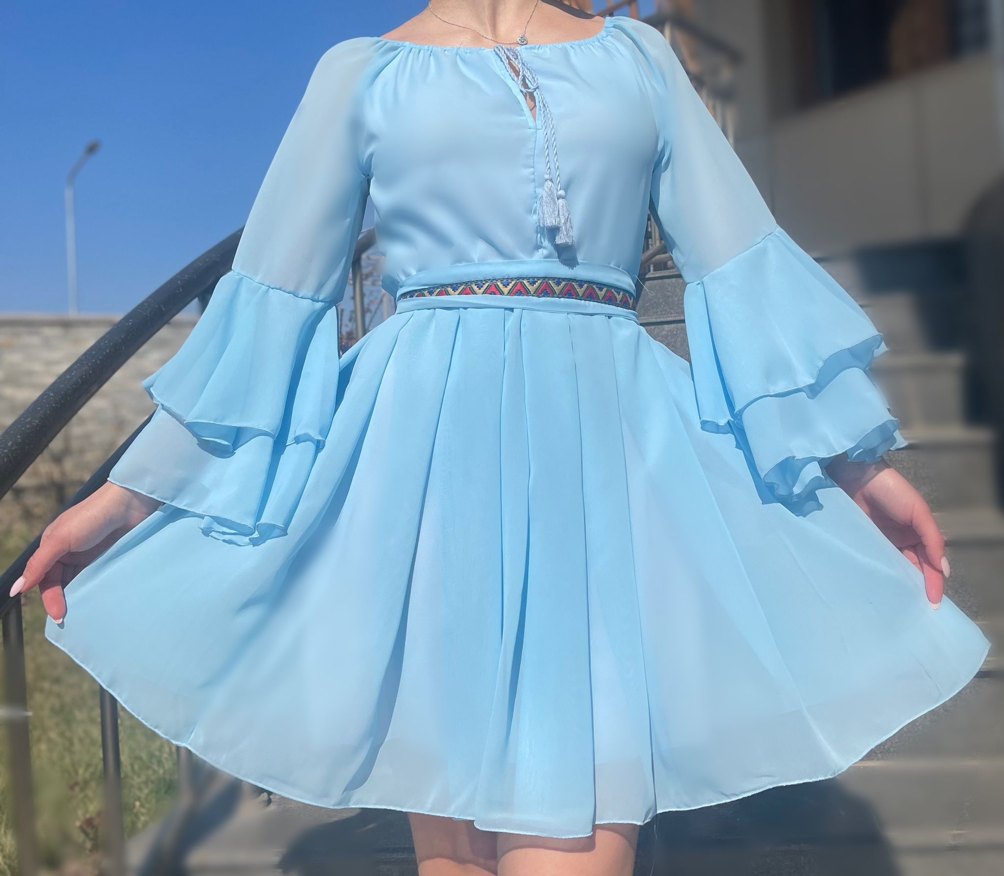 Rochie scurta Engros pentru femei, mix culori cu model traditional imprimat, din tafta