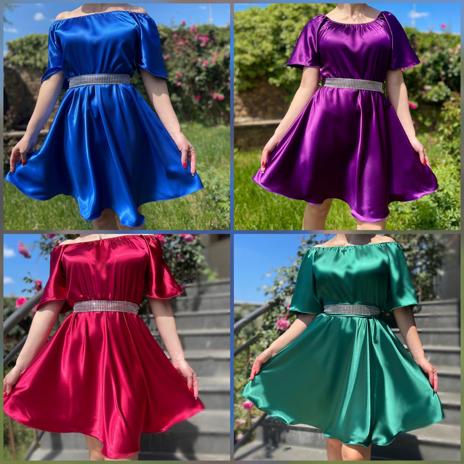 Rochie scurta Engros pentru femei, din satin, mix culori
