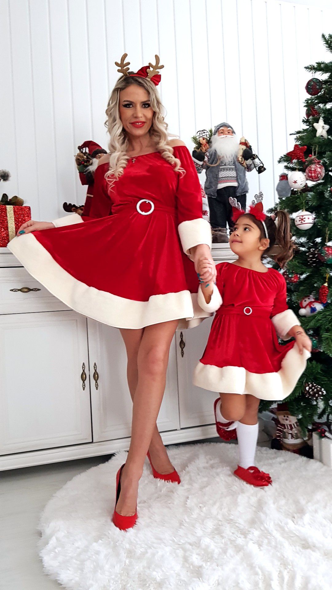 Rezultate Căutare: Set Rochii elegante mama-fiica, din catifea cu blanita si cordon, Rosii
