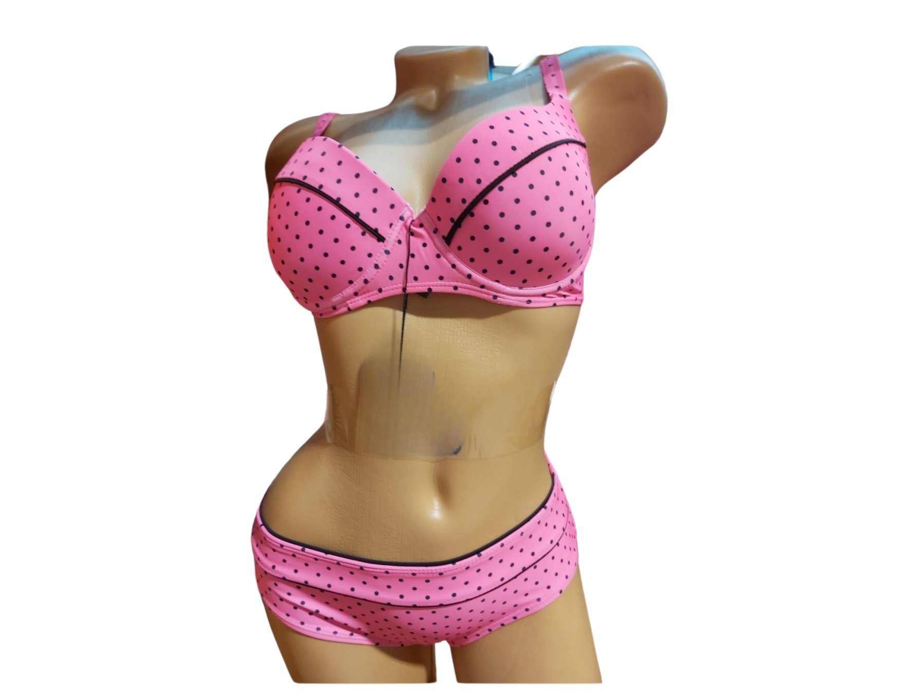 Costum de baie FEMEI, 2 piese, Slip lat , Sutien cu bretele detasabile si burete, Engross, Marimi 42-50, 5bc/serie, Roz buline