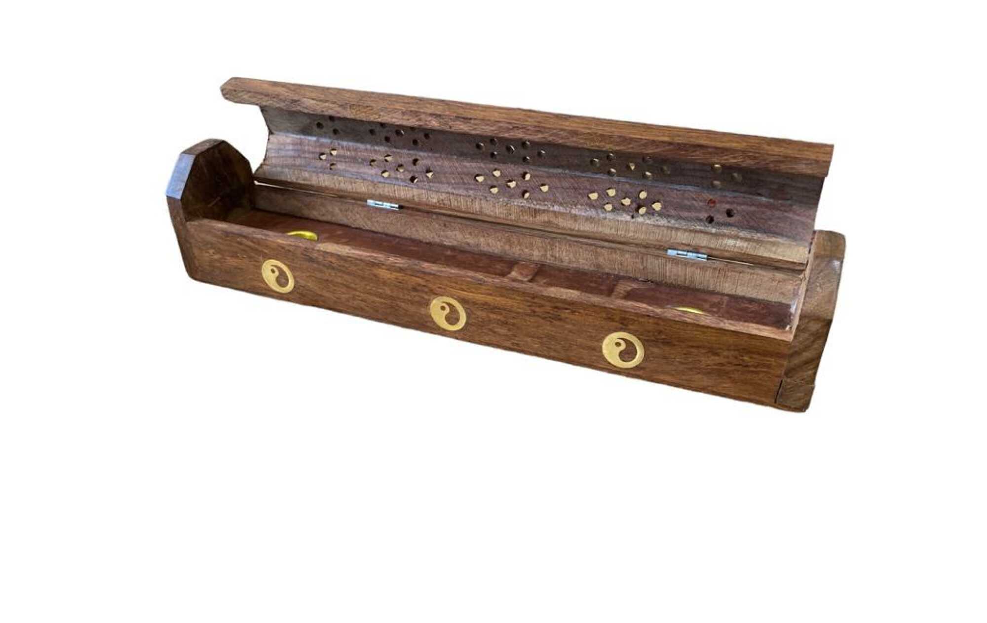 Suport lemn betisoare si conuri parfumate cufar ying yang