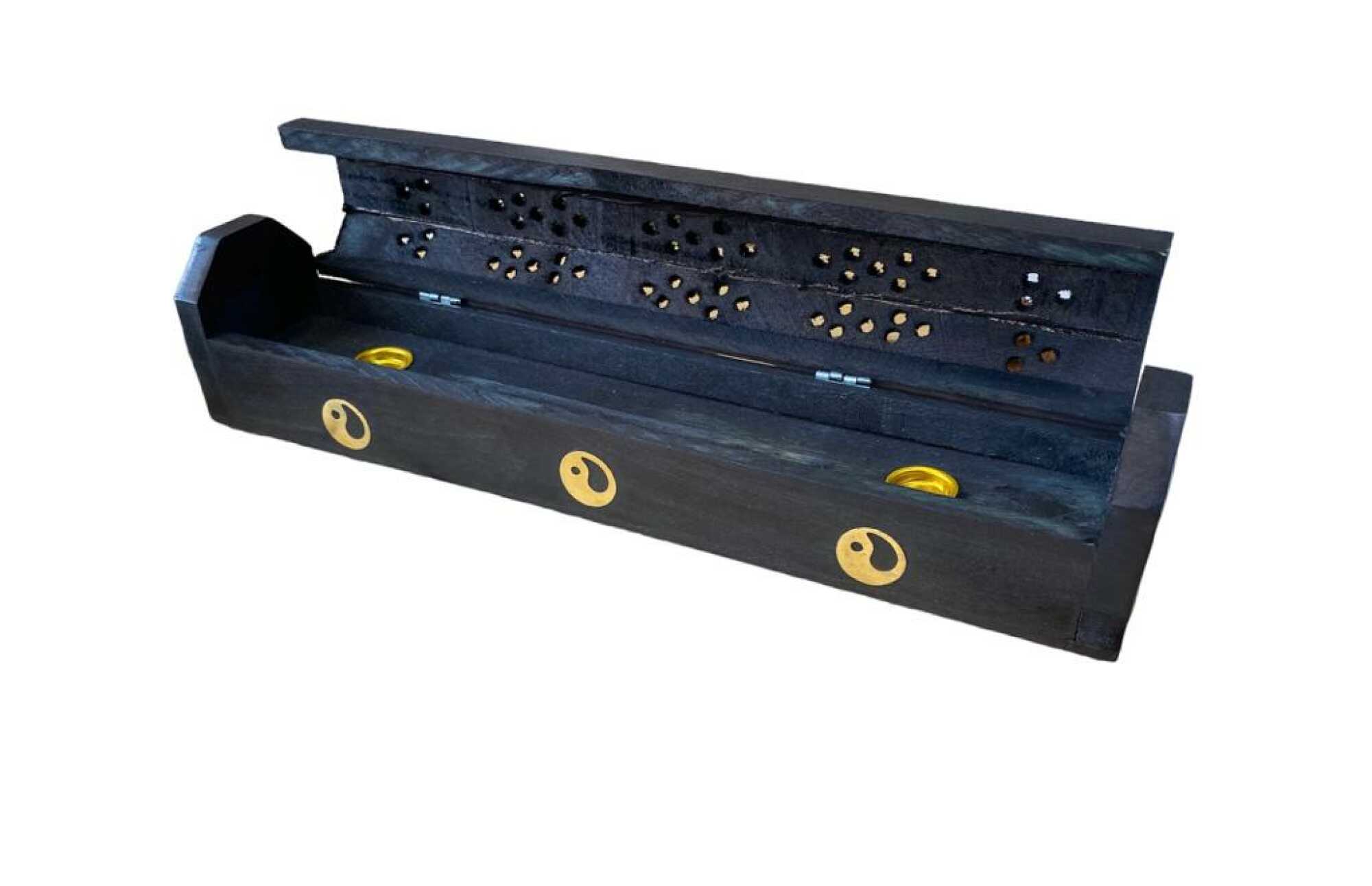 Suport lemn betisoare parfumate si conuri Cufar Negru Ying Yang